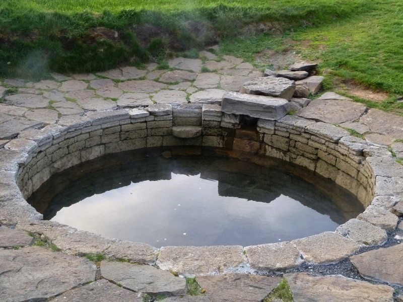 Snorralaug est une petite piscine primitive alimentée par un petit aqueduc
