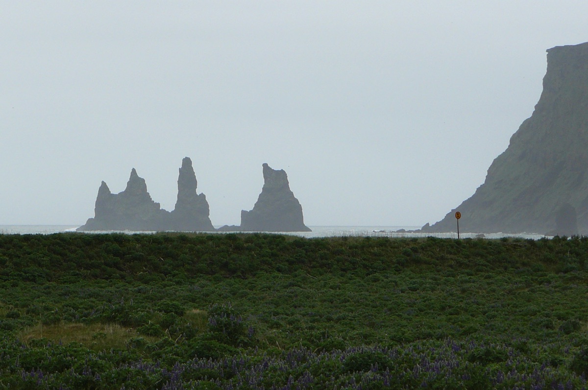 les reynisdrangar sont des pointes de 66 m de haut qui se détachent au large de VIK