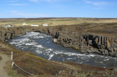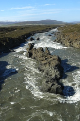 GODAFOSS : les chutes des dieux scindées en deux bras sur une roche de basalte