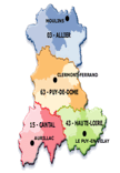 Région administrative du centre de la France dans le Massif Central, l'AUVERGNE, qui a pour chef lieu Clermont Ferrand comprend quatre départements : l'Allier, le Cantal, la Haute Loire et le Puy de Dôme.