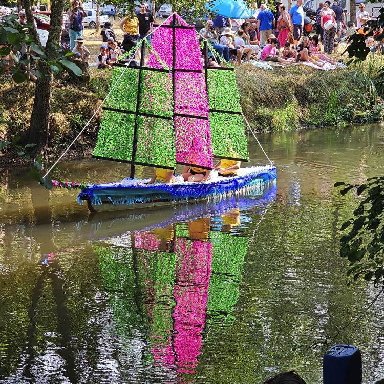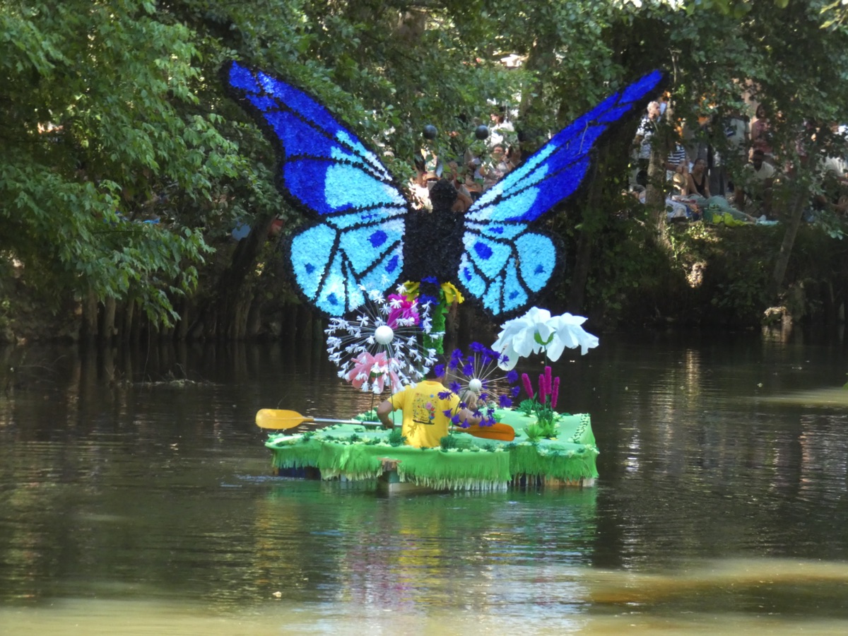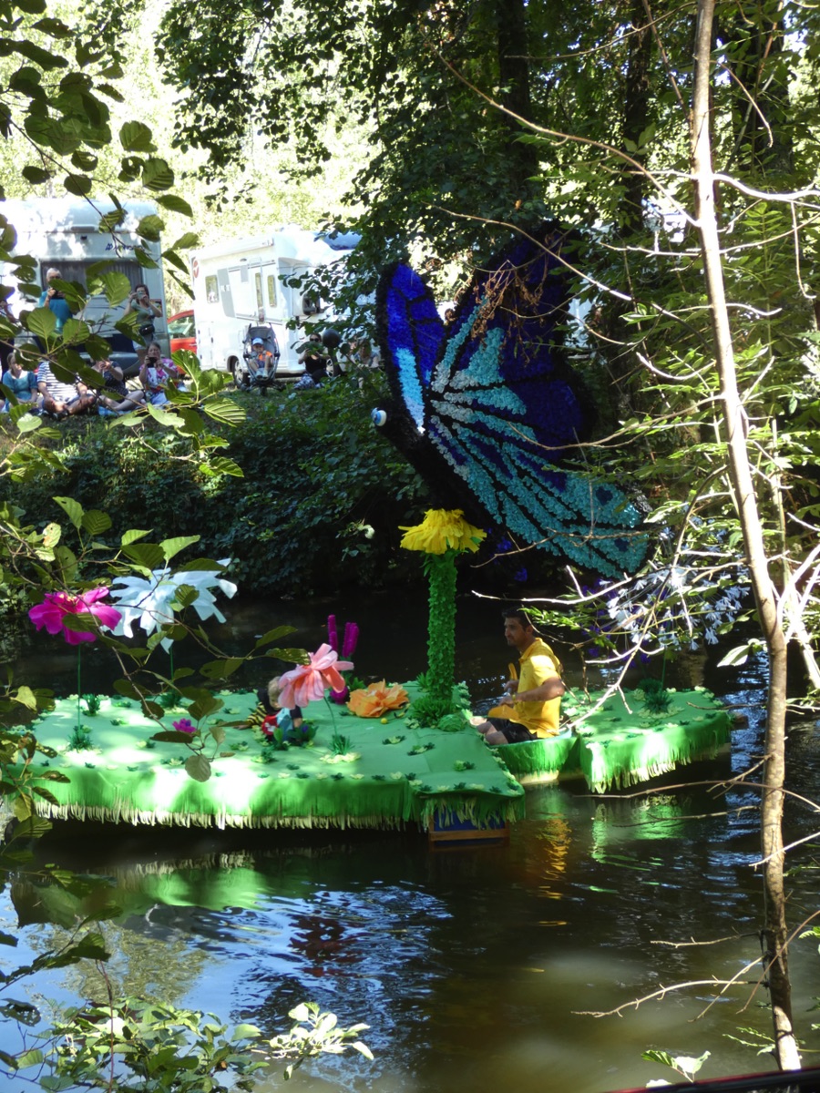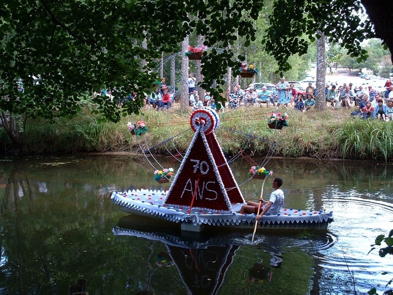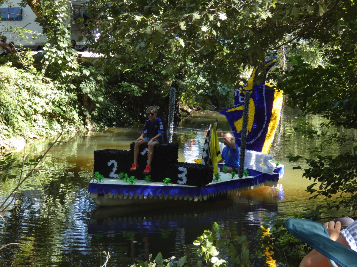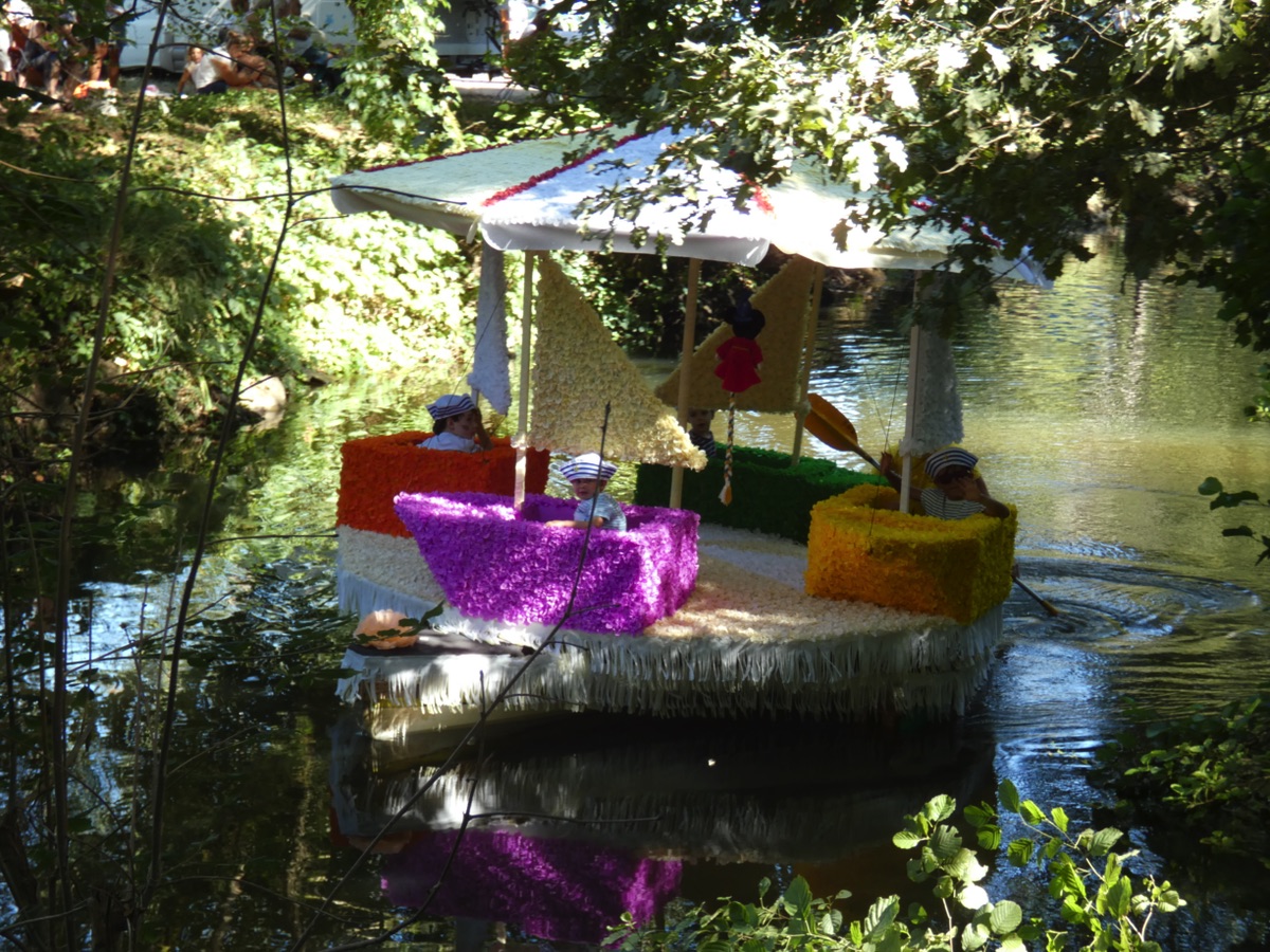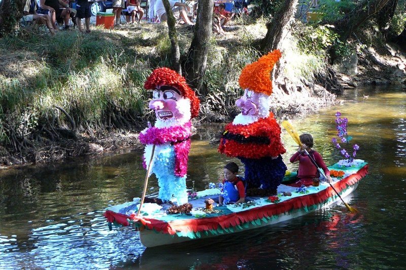 Chaque année, depuis 1935, le dimanche après le 15 août, un défilé de canoës fleuris a lieu sur le Ciron, à BOMMES. Ce petit village de Gironde, situé près de Sauternes, et qui a vu naître mon mari, se peuple de façon incroyable pour cette occasion !