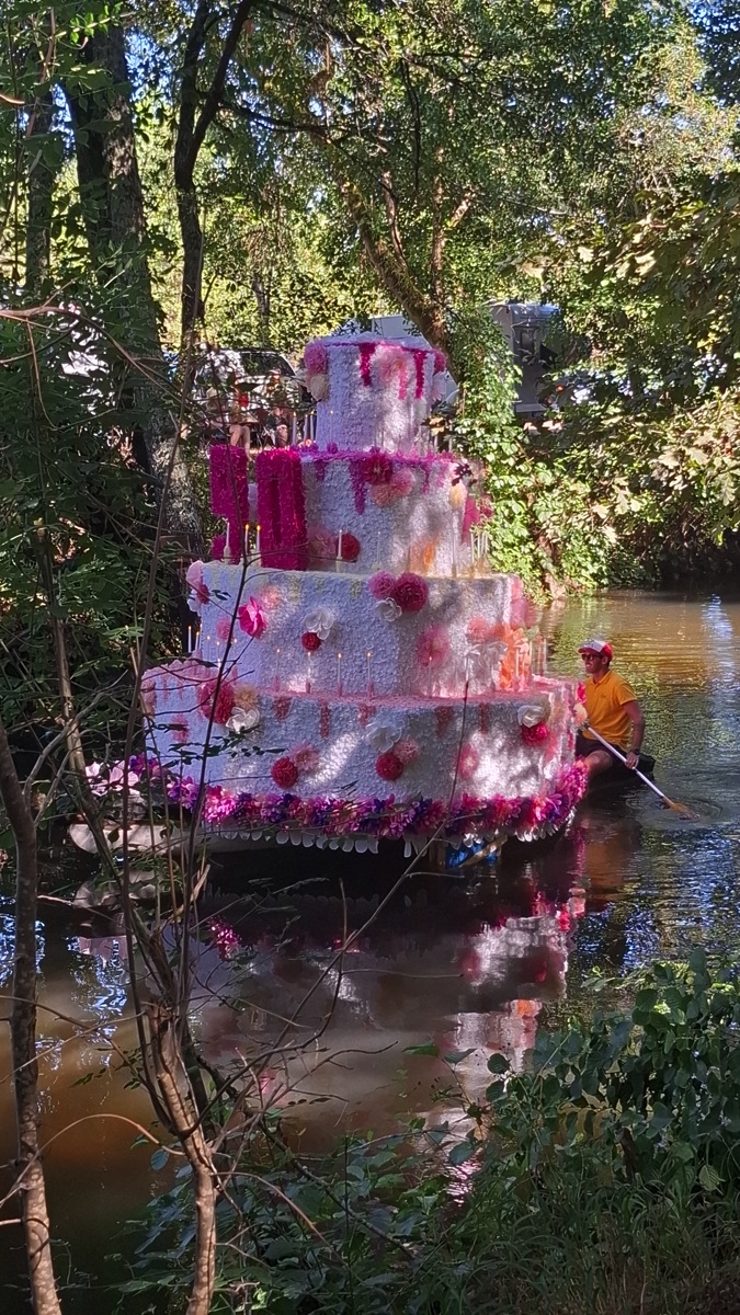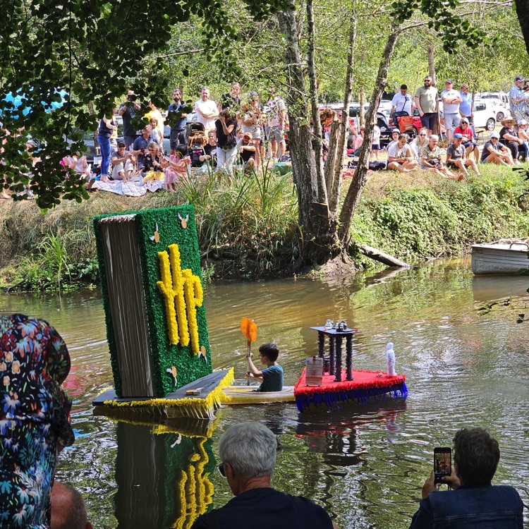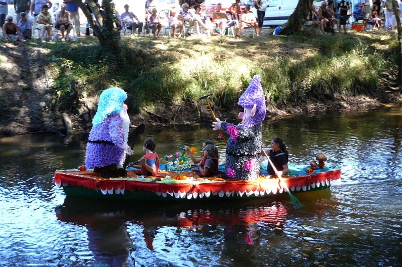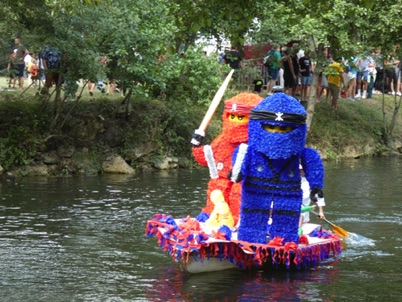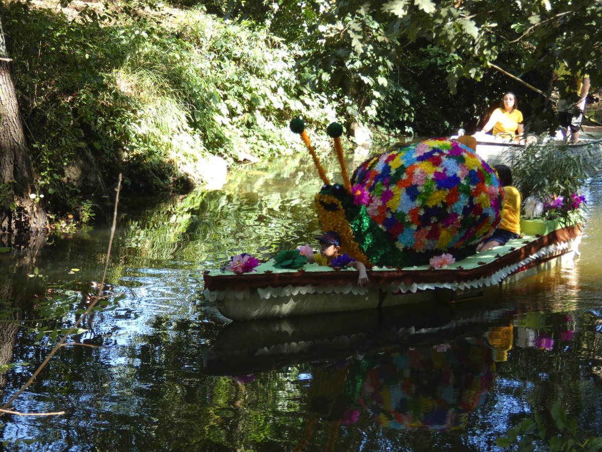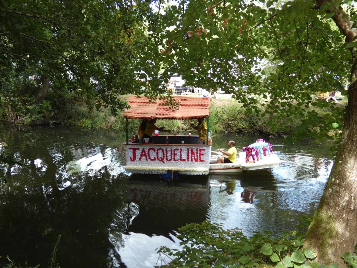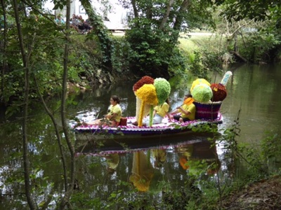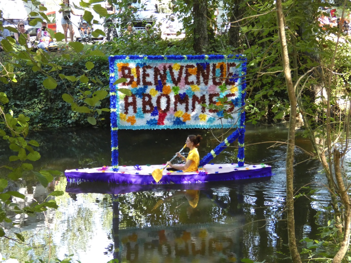 Chaque année, depuis 1935, le dimanche après le 15 août, un défilé de canoës fleuris a lieu sur le Ciron, à BOMMES. Ce petit village de Gironde, situé près de Sauternes, et qui a vu naître mon mari, se peuple de façon incroyable pour cette occasion !
