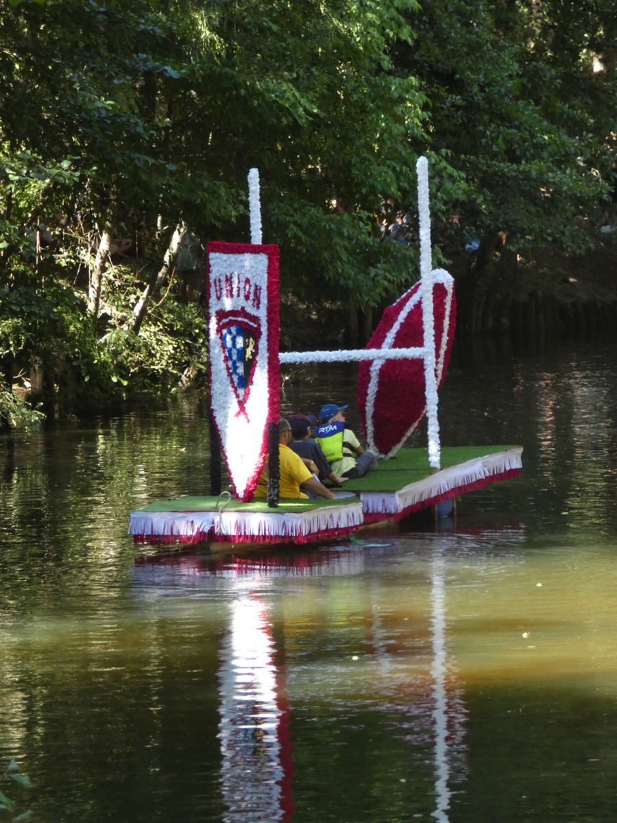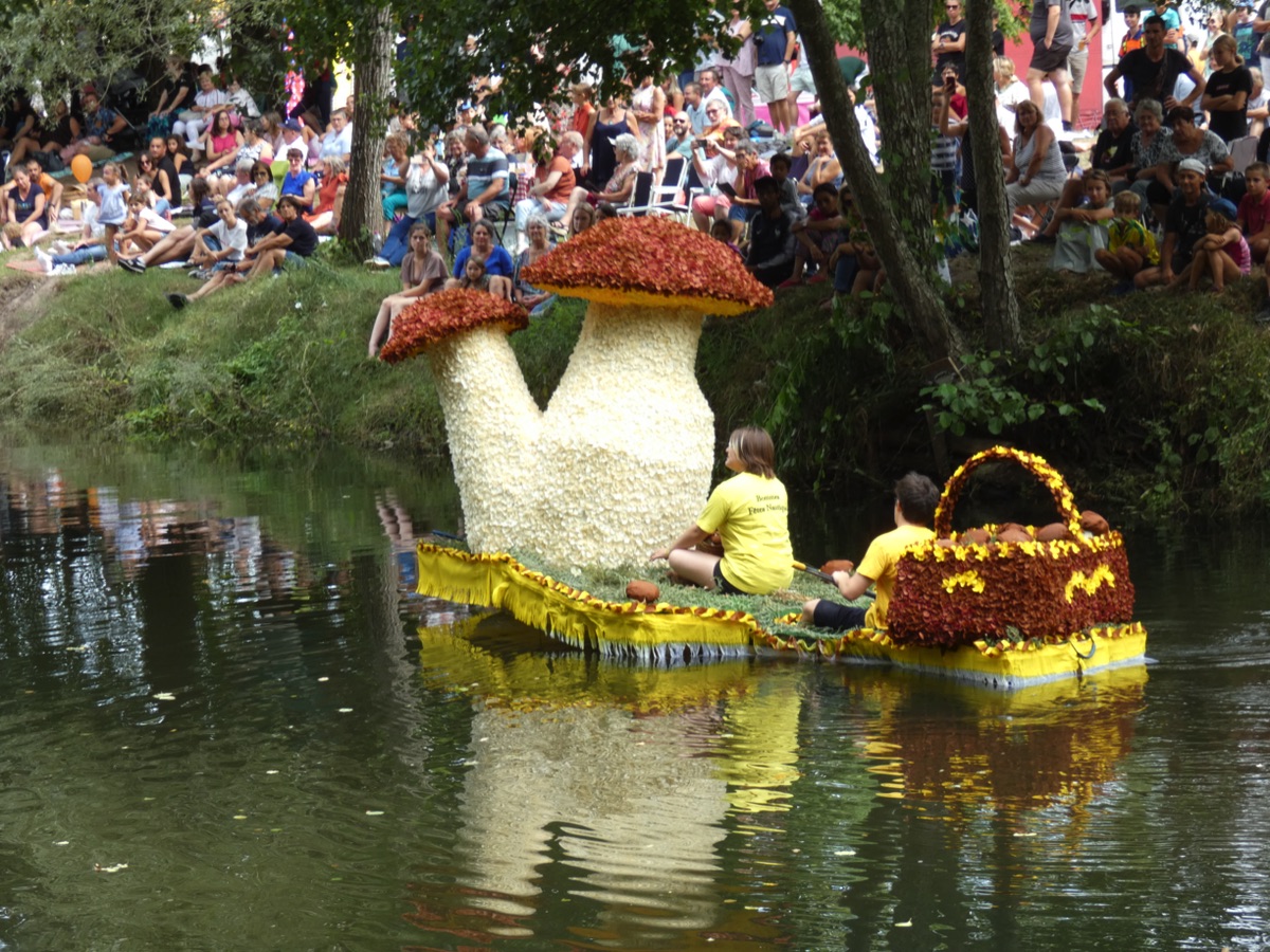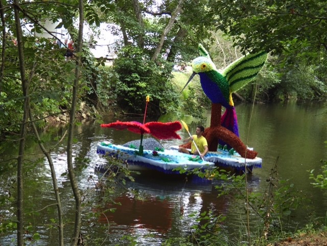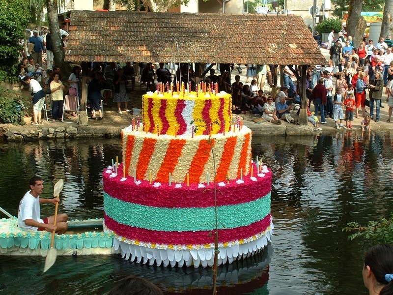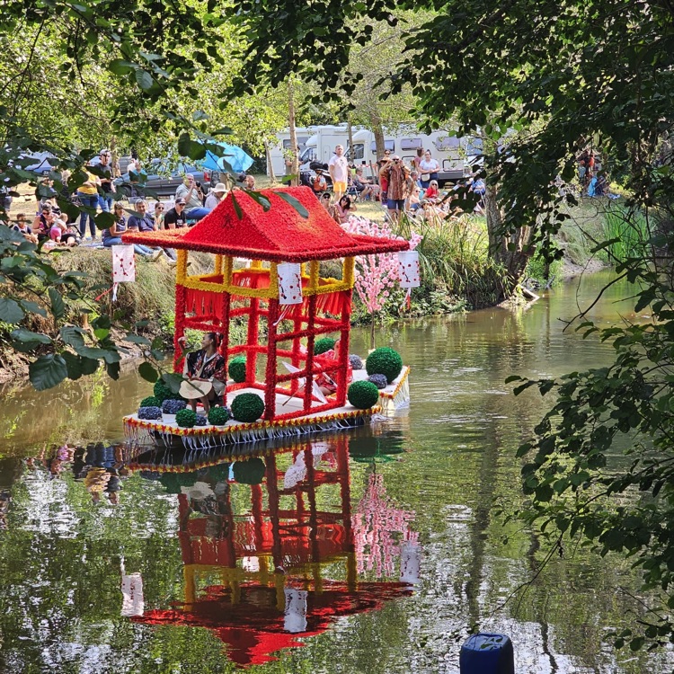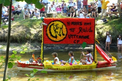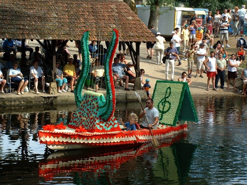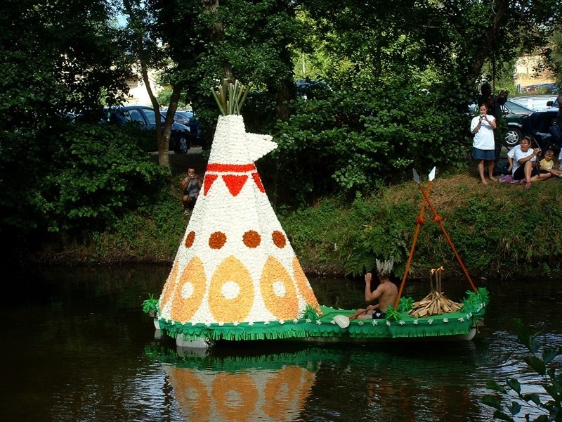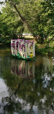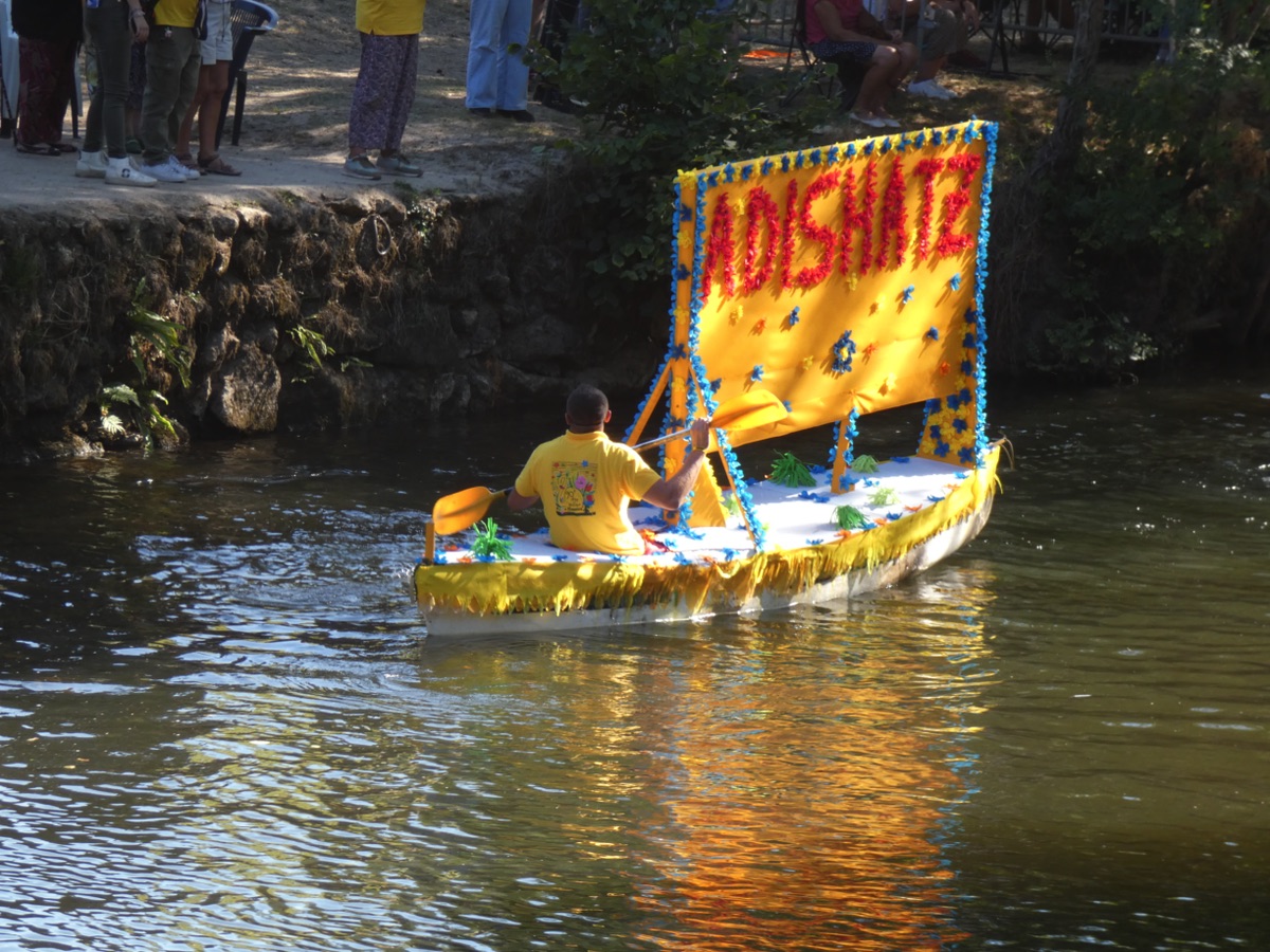 Chaque année, depuis 1935, le dimanche après le 15 août, un défilé de canoës fleuris a lieu sur le Ciron, à BOMMES. Ce petit village de Gironde, situé près de Sauternes, et qui a vu naître mon mari, se peuple de façon incroyable pour cette occasion !