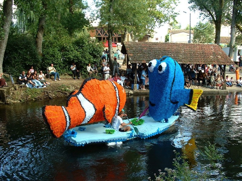 Les habitants de la commune réalisent pour chaque saison des décors variés et colorés avant de les installer sur des canoës. Il faut beaucoup d'imagination pour trouver des nouveautés chaque été. Les bénévoles assurent la mise en scène mais aussi le "maintien de l'ordre". En voici quelques extraits ...