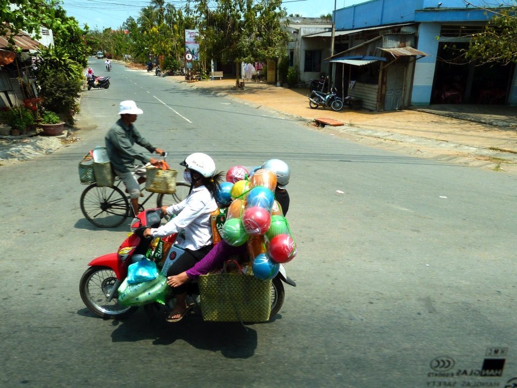 Dans beaucoup de pays notamment d'Asie, les gens se déplacent avec un véhicule muni de deux roues, motorisé ou pas et pouvant transporter une ou plusieurs personnes mais aussi différents objets ou denrées !!!