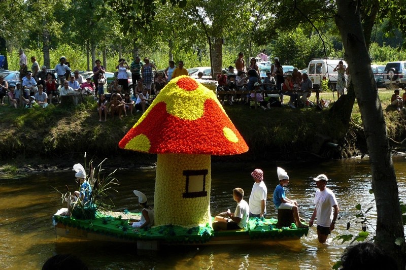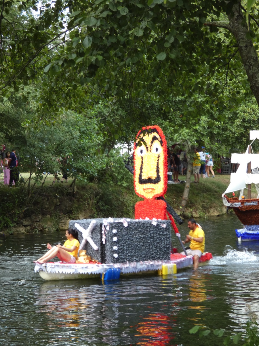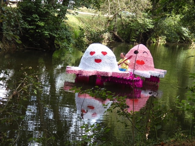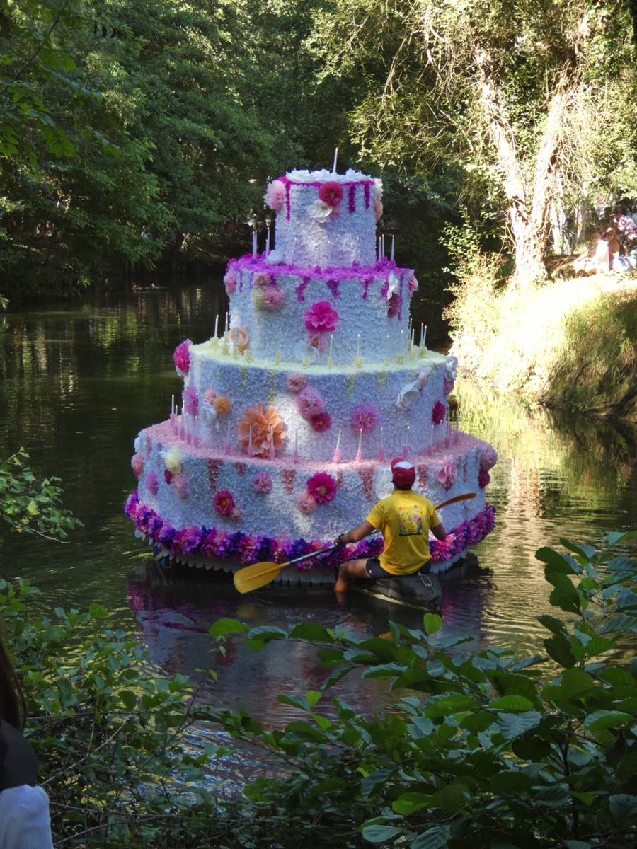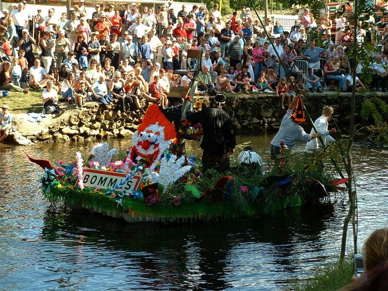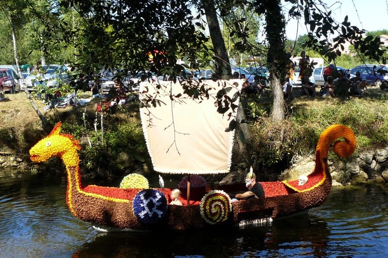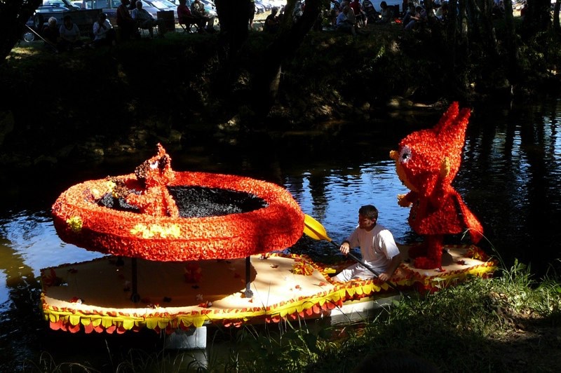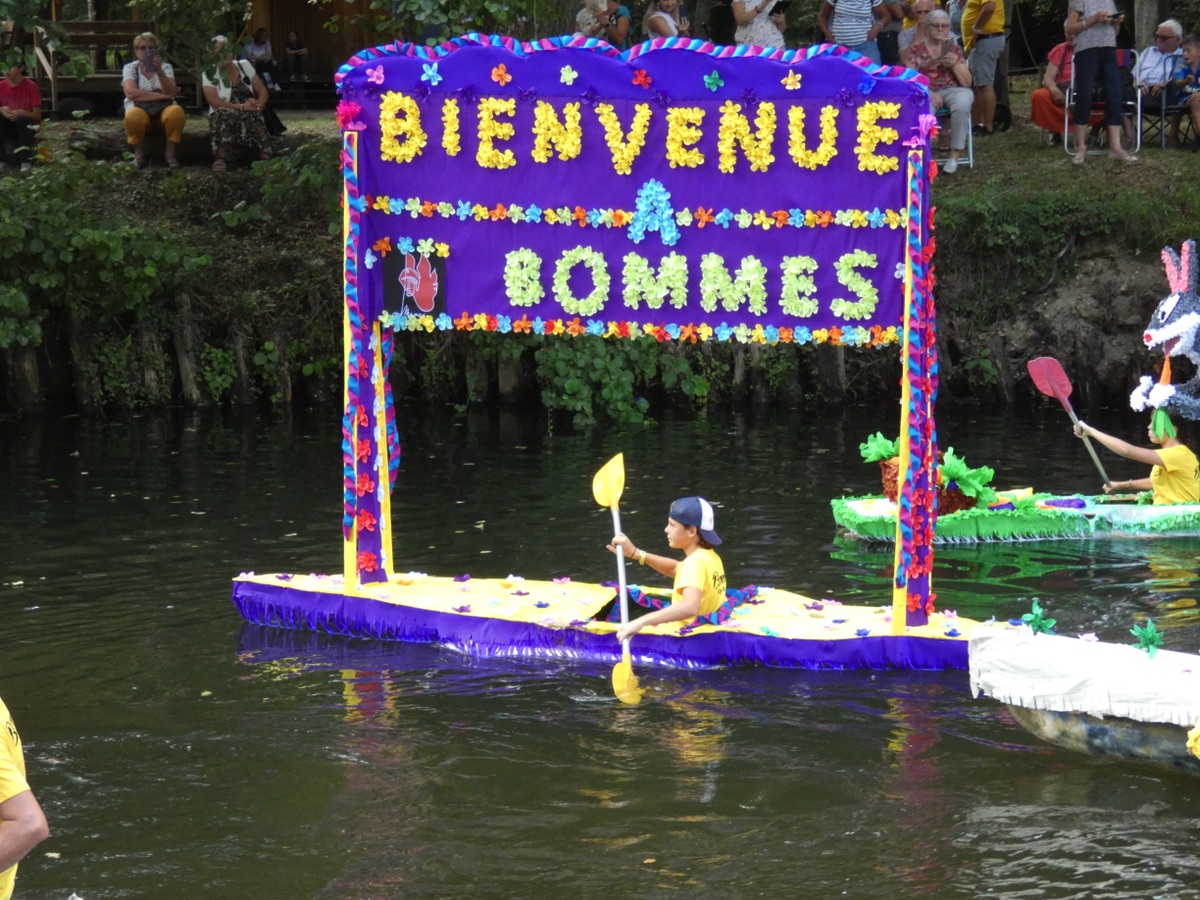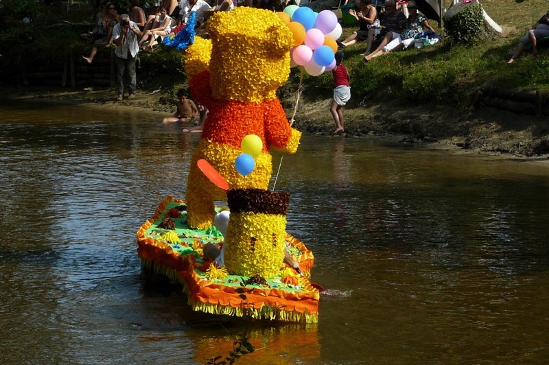 Chaque année, depuis 1935, le dimanche après le 15 août, un défilé de canoës fleuris a lieu sur le Ciron, à BOMMES. Ce petit village de Gironde, situé près de Sauternes, et qui a vu naître mon mari, se peuple de façon incroyable pour cette occasion !