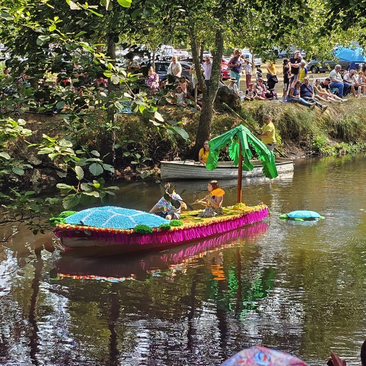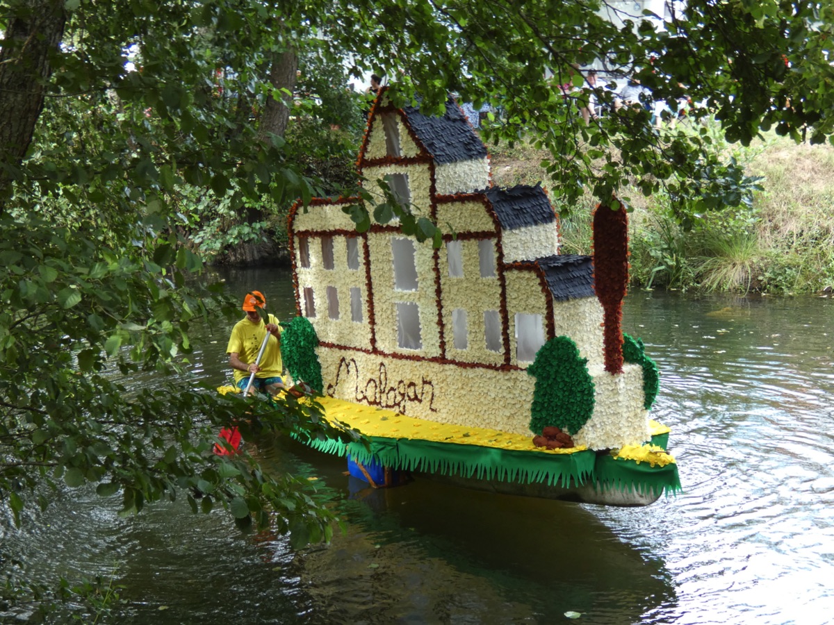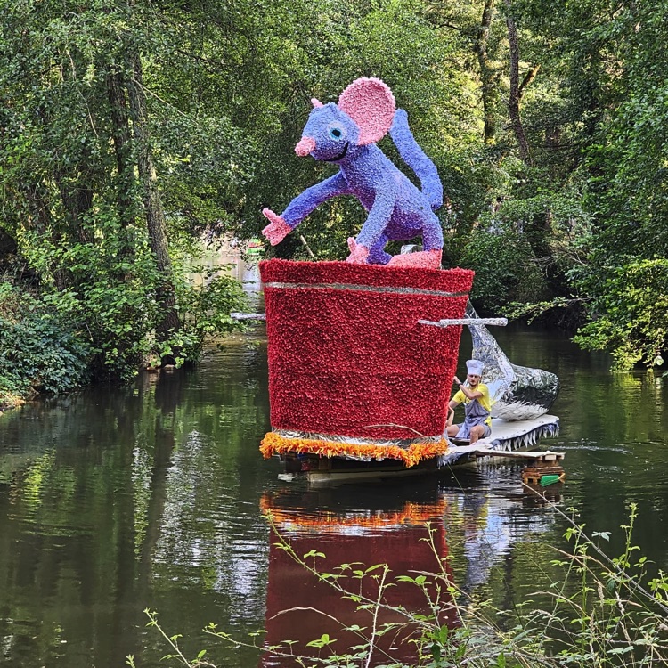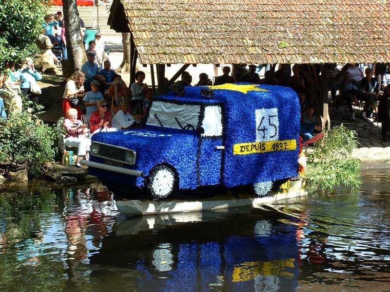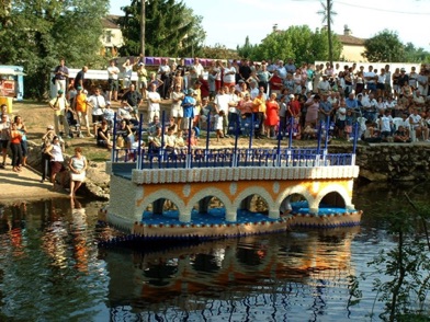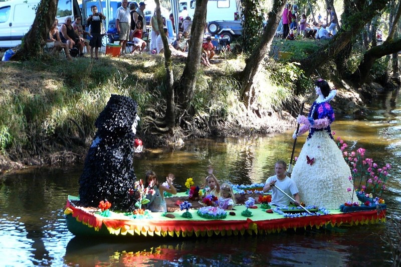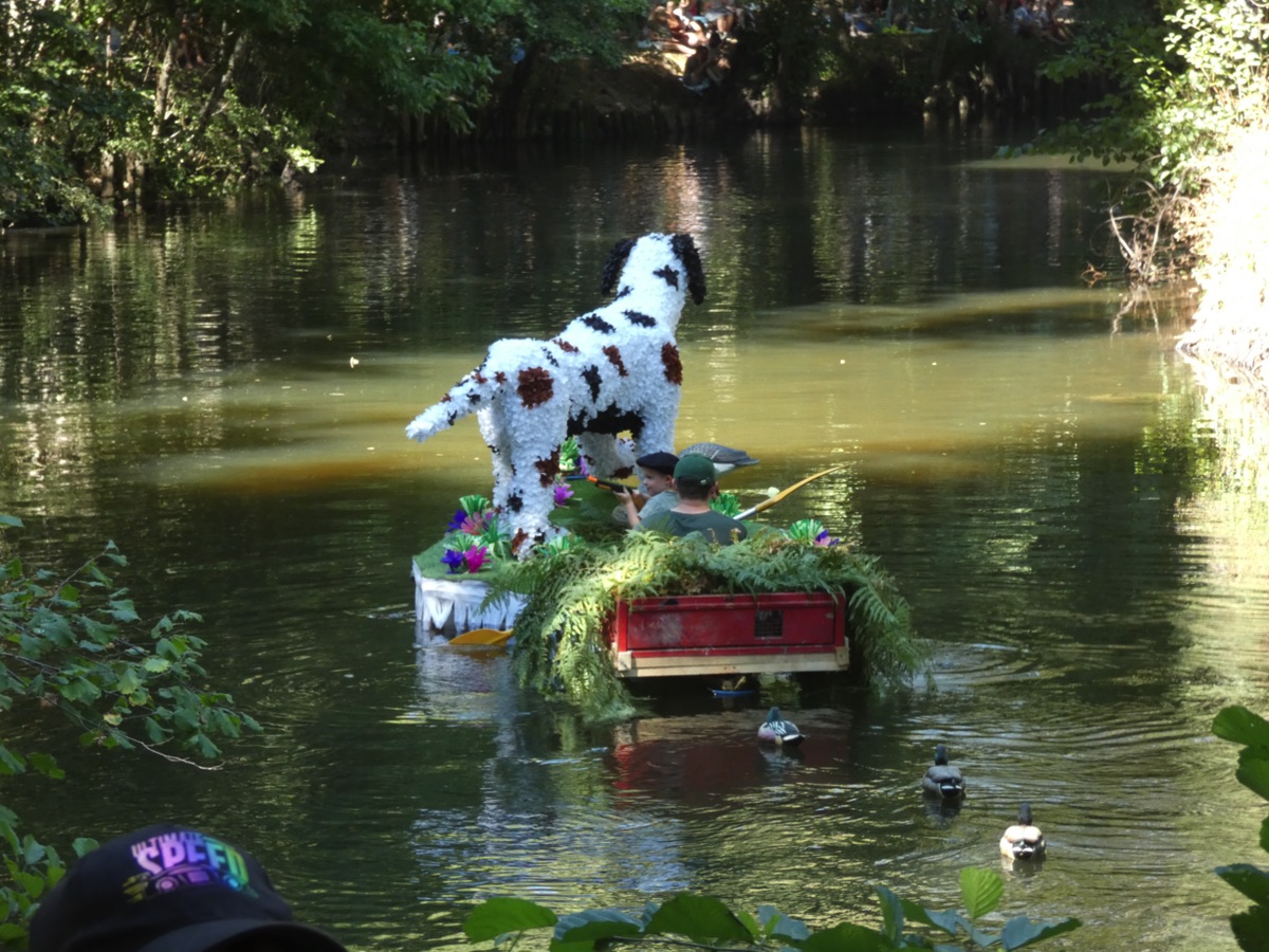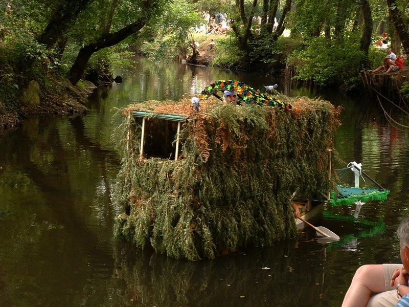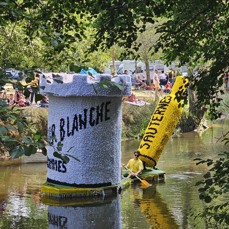 Chaque année, depuis 1935, le dimanche après le 15 août, un défilé de canoës fleuris a lieu sur le Ciron, à BOMMES. Ce petit village de Gironde, situé près de Sauternes, et qui a vu naître mon mari, se peuple de façon incroyable pour cette occasion !