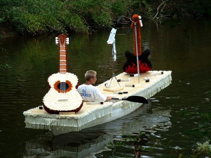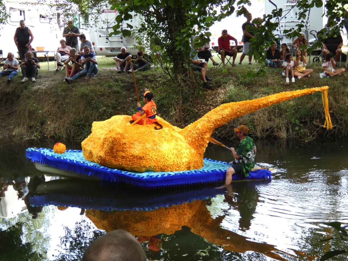 Les habitants de la commune réalisent pour chaque saison des décors variés et colorés avant de les installer sur des canoës. Il faut beaucoup d'imagination pour trouver des nouveautés chaque été. Les bénévoles assurent la mise en scène mais aussi le "maintien de l'ordre". En voici quelques extraits ...