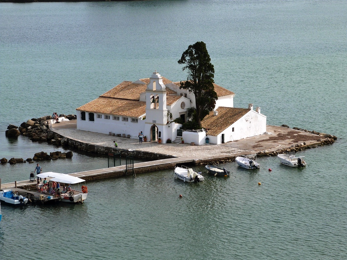 KERKIRA, la capitale : la piste de l'aéroport qui est juste au dessus de l'eau !