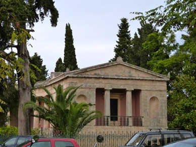le péristyle depuis lequel Sissi pouvait voir le cénotaphe de son fils