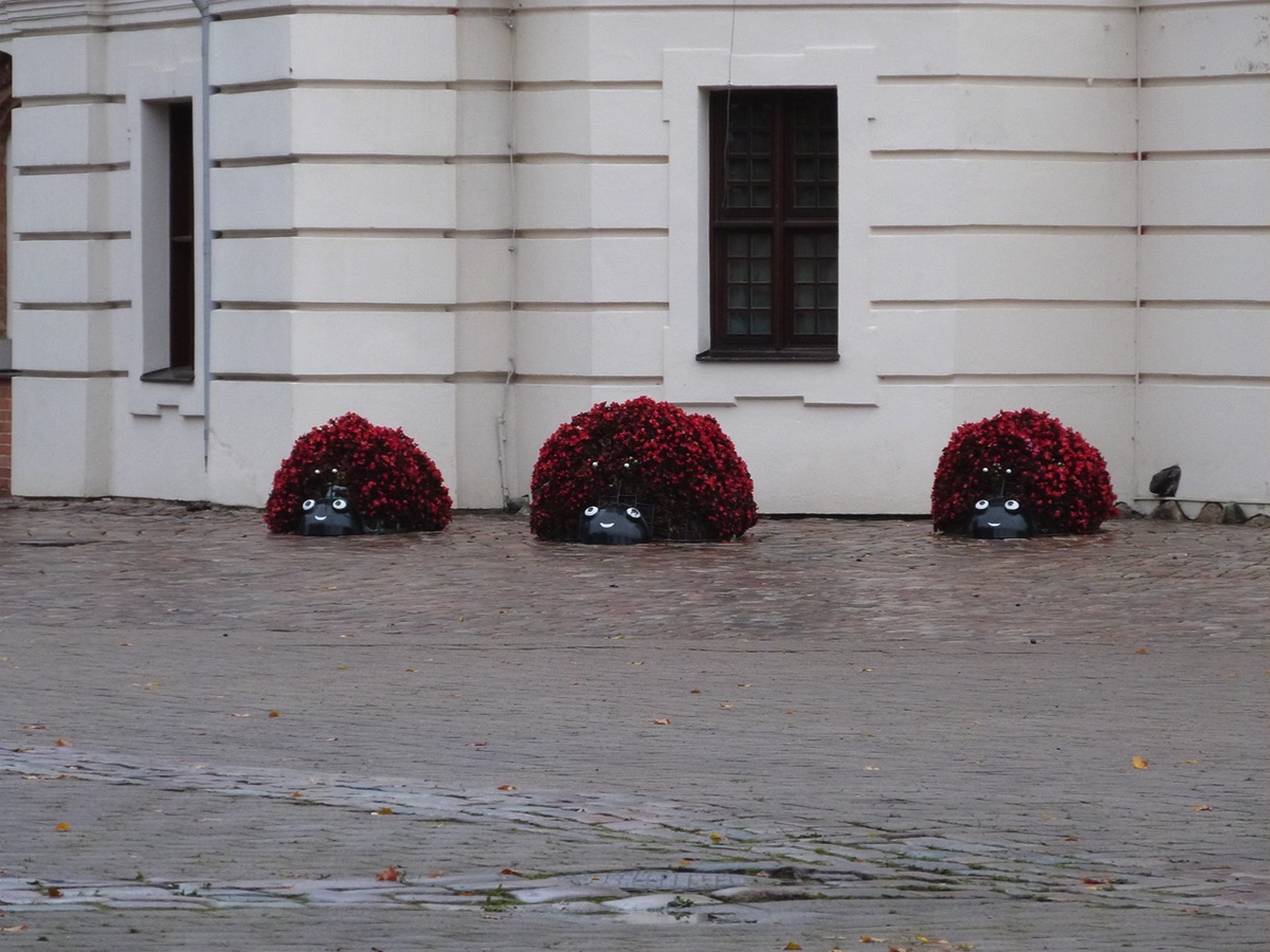 devant l'église des coccinelles en fleurs !