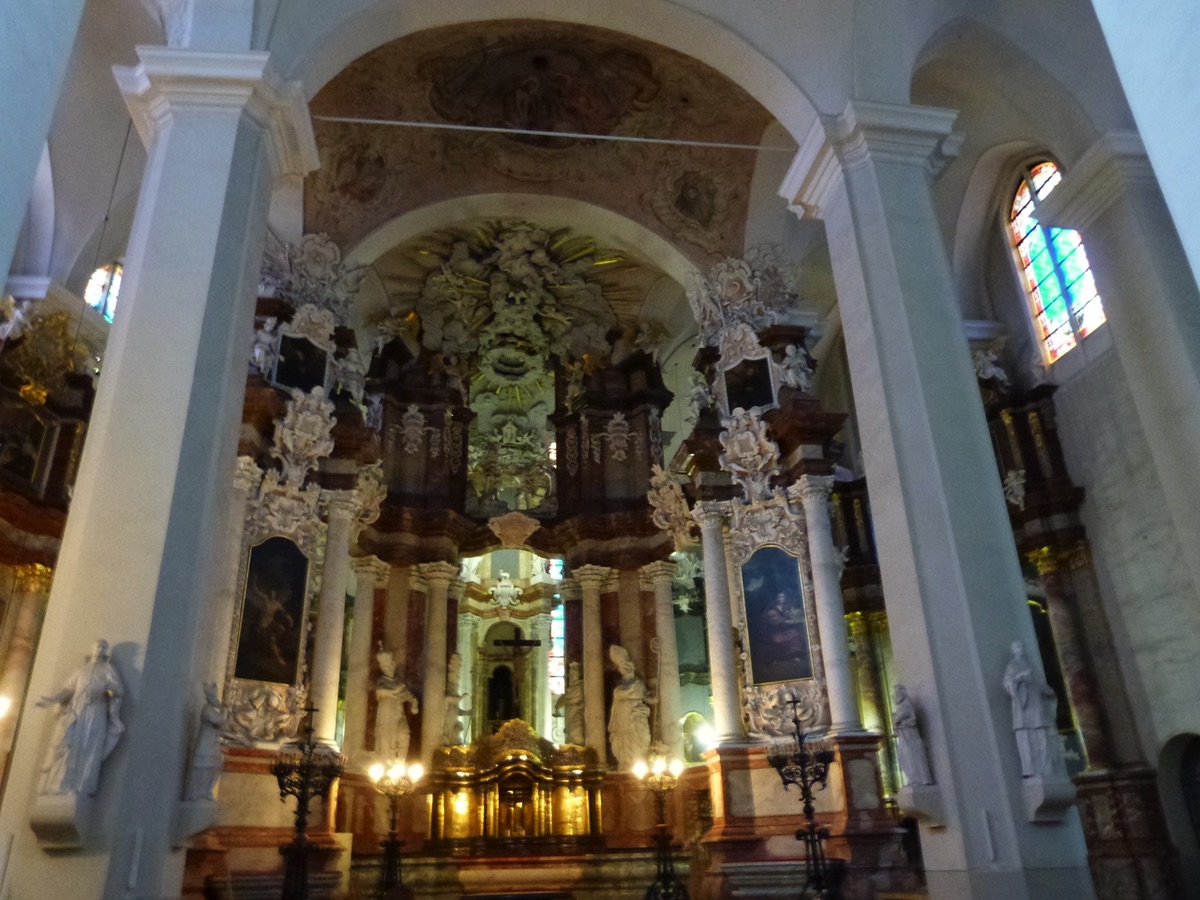 Place Rotusès et l'église baroque de la Sainte Trinité