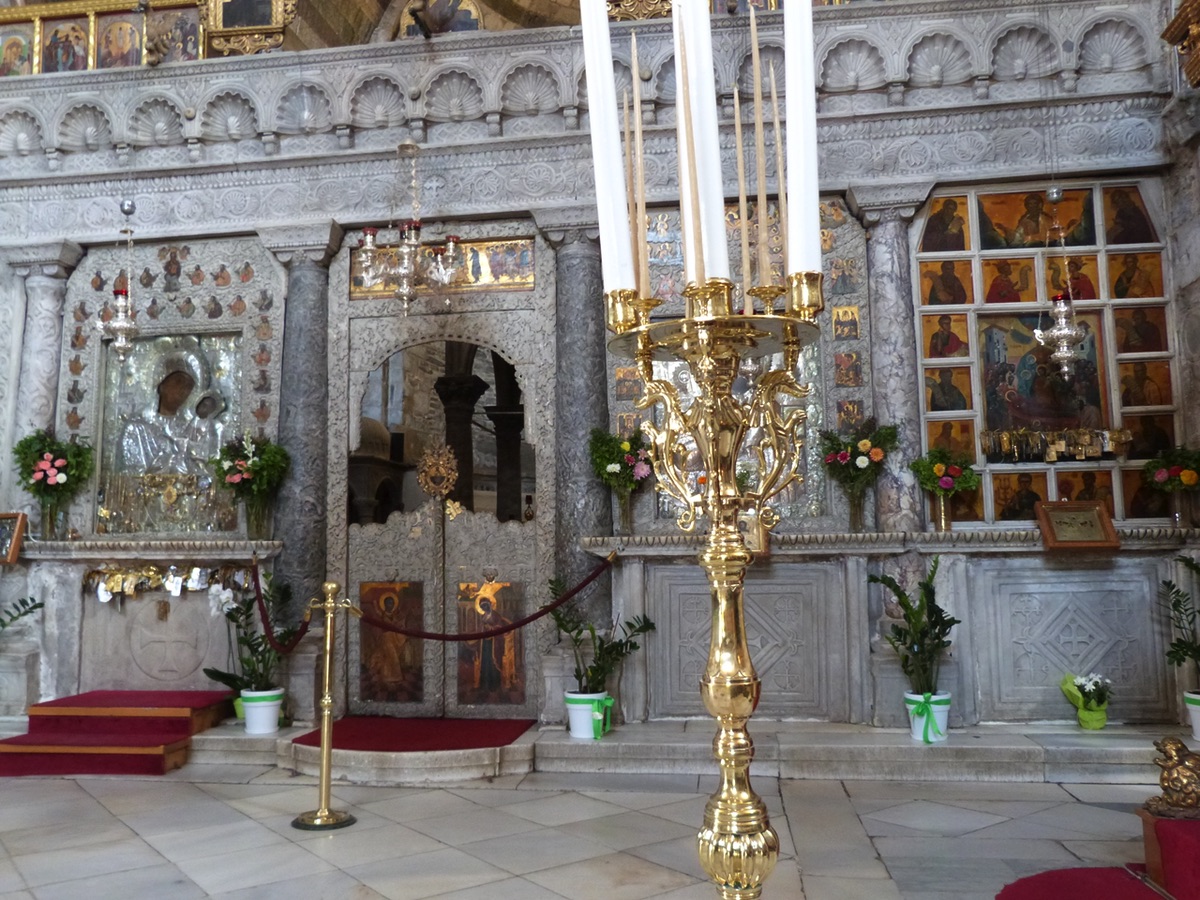 nef entièrement en marbre sculpté et iconostase avec icônes en argent du 18ème