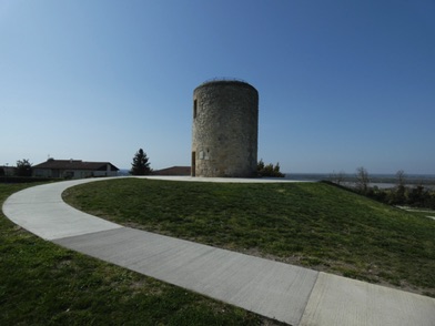 ST ANDRE DE CUBZAC, site des Moulins de Montalon : stèle qui marque le passage du 45ème parallèle