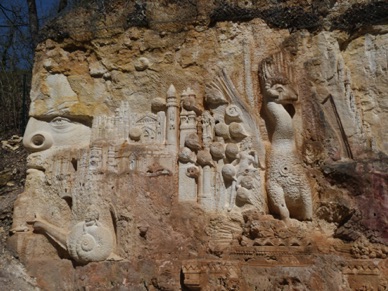 des sculpteurs donnent vie aux immenses parois de calcaire blanc